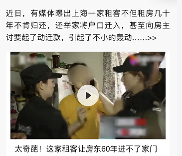 曾有一个租客霸占房东屋子60年不说,还将一家人的户口迁入。