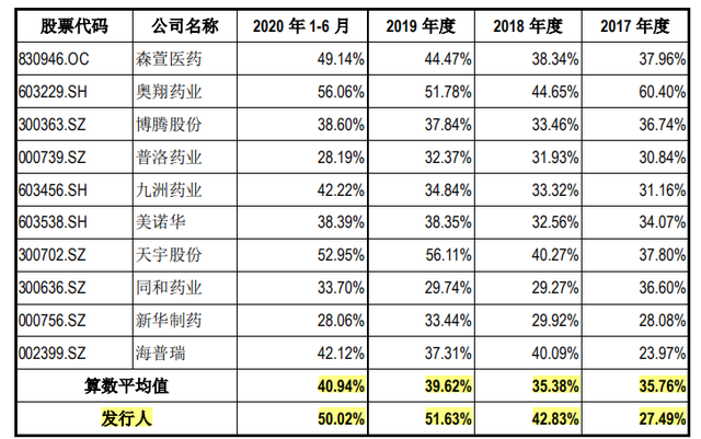 对应的是公司主营业务毛利率分别为27.35%、42.83%、51.52%和50.07%,呈现增长趋势,特别是2018年涨幅达56.7%,并且报告期内毛利率高出可比同行均值10个点左右。