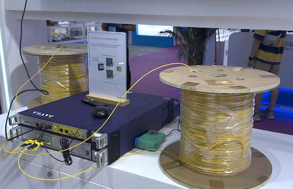 在今年深圳光博会的Credo展台上,有这样两个演示案例。其一是通过Credo客户采用的Lark 850的LRO 800G光模块的半个DSP方案,功耗在对标全DSP方案时,能够降低35%以上。并且通过一条500米长的光纤进行测试。