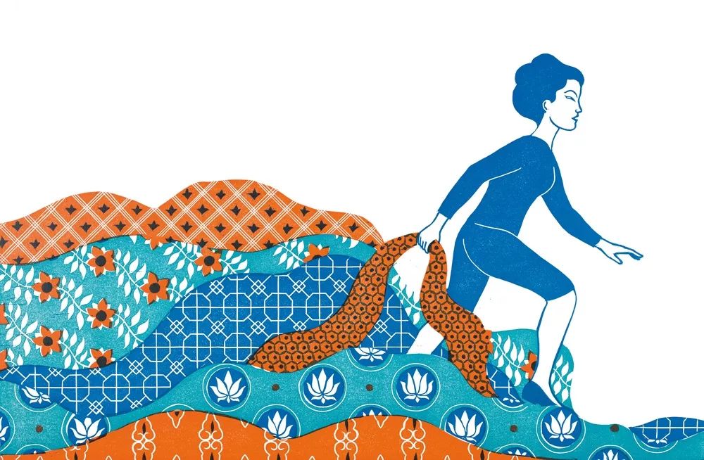 在学习的过程中,她打开了自己的图像世界,吸纳了不同艺术家的影响,并且使用不同的绘图技术,比如彩绘、拼贴、亚麻油毡版画,如今她依然在她的绘本中用到这些技法。在《孔子的一生》中,她用的是类似于丝网印刷的一种技术,而《木兰辞》则是用版画的形式来呈现的,她因此制作了十多块四色雕版。她也会大胆尝试水粉颜料或者拼贴技术,有时也会用电脑来完成上色,但她会事先完成图案。