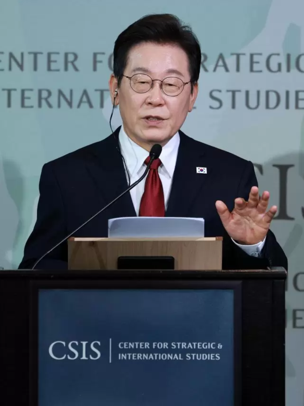 与简短的元首会面相比,李在明系统性的政策表述,主要放在了对智库访问的演讲中。