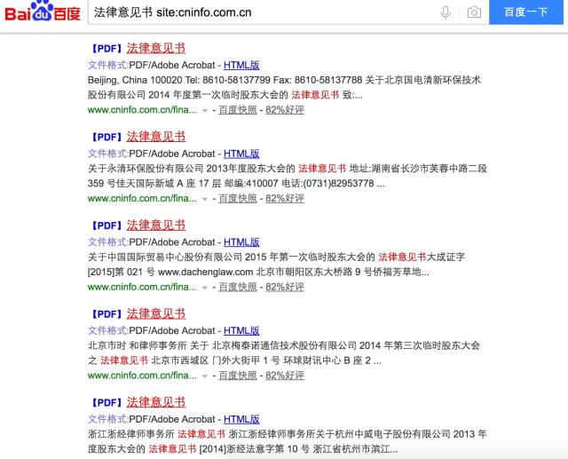 5. 【场景描述】想要看一下上市公司法律意见书,也可以site巨潮资讯网,这是证券披露网站。