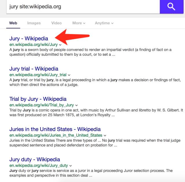 又比如,想知道陪审团的含义,可以site如下,因为维基百科打开慢,直接在搜索引擎site一下,可能快一点。