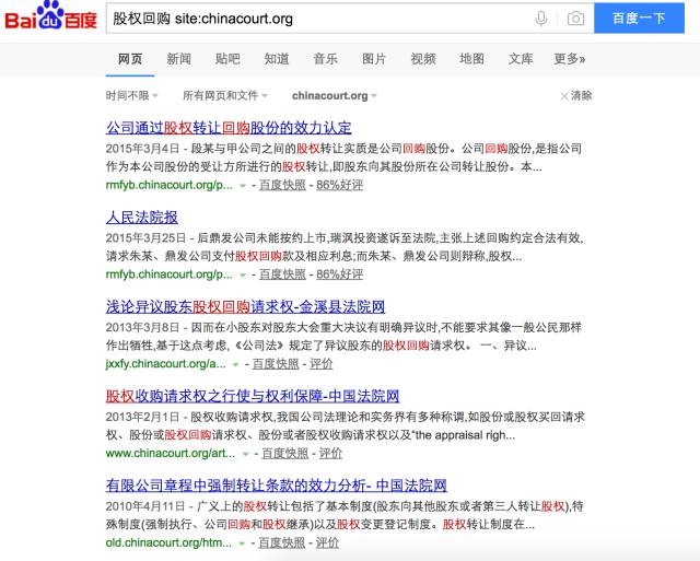 1. 【场景描述】遇到一个问题,想看看中国法院网(www.chinacourt.org)有没有相关报道,因为该网站很多文章是法官写的,我们可以用site试一下。