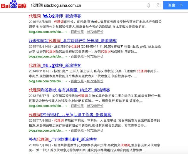 4. 【场景描述】想看一下,律师在博客上发表的代理意见,也可以site一下新浪博客。