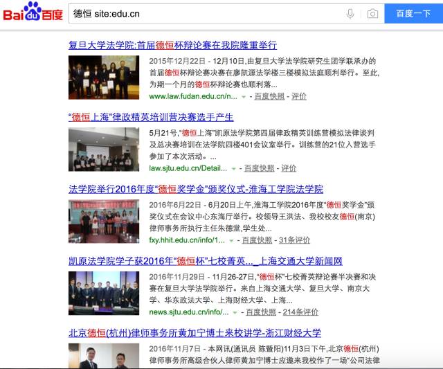 2. 【场景描述】一个律所,是否重视在法学院的宣传推广,可以看出其未来的人才战略。比如,想了解德恒在大学高校的活动情况,也可以site一下。