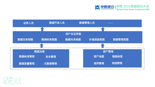 在基础层提供基础算力;数据层提供资产盘点、运营分析;引擎层提供资产审批、逻辑审核、使用管理;交互层提供数据资产搜索与代码编写交互。如下图: