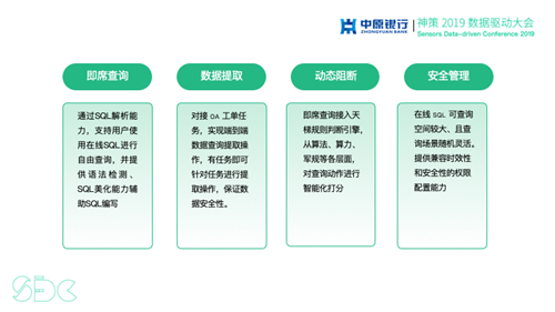 在以“矩·变”为主题的神策2019数据驱动大会现场,中原银行数据银行部胡成君发表了名为《从以数据为中心到以用户为中心——智能化BI体系建设实践》的主题演讲,以下内容根据他的现场演讲内容整理所得。