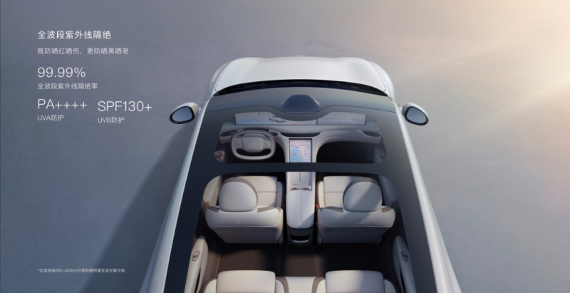防晒难题的背后,是传统玻璃的性能局限——普通汽车玻璃仅能隔绝30%左右的红外线,紫外线隔绝率不足50%,而全景天幕的大面积设计,更是让热量和紫外线直接穿透座舱。体感不适之外,更关乎隐私。在都市的流光溢彩中,全景天幕的“透明属性”成了令人尴尬的“展示柜”。