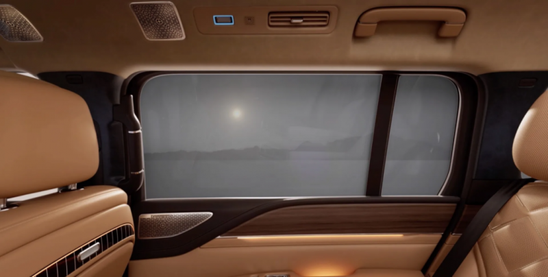 仰望U8L后排侧窗标配海优威PDCLC智能调光玻璃;图片来源:仰望