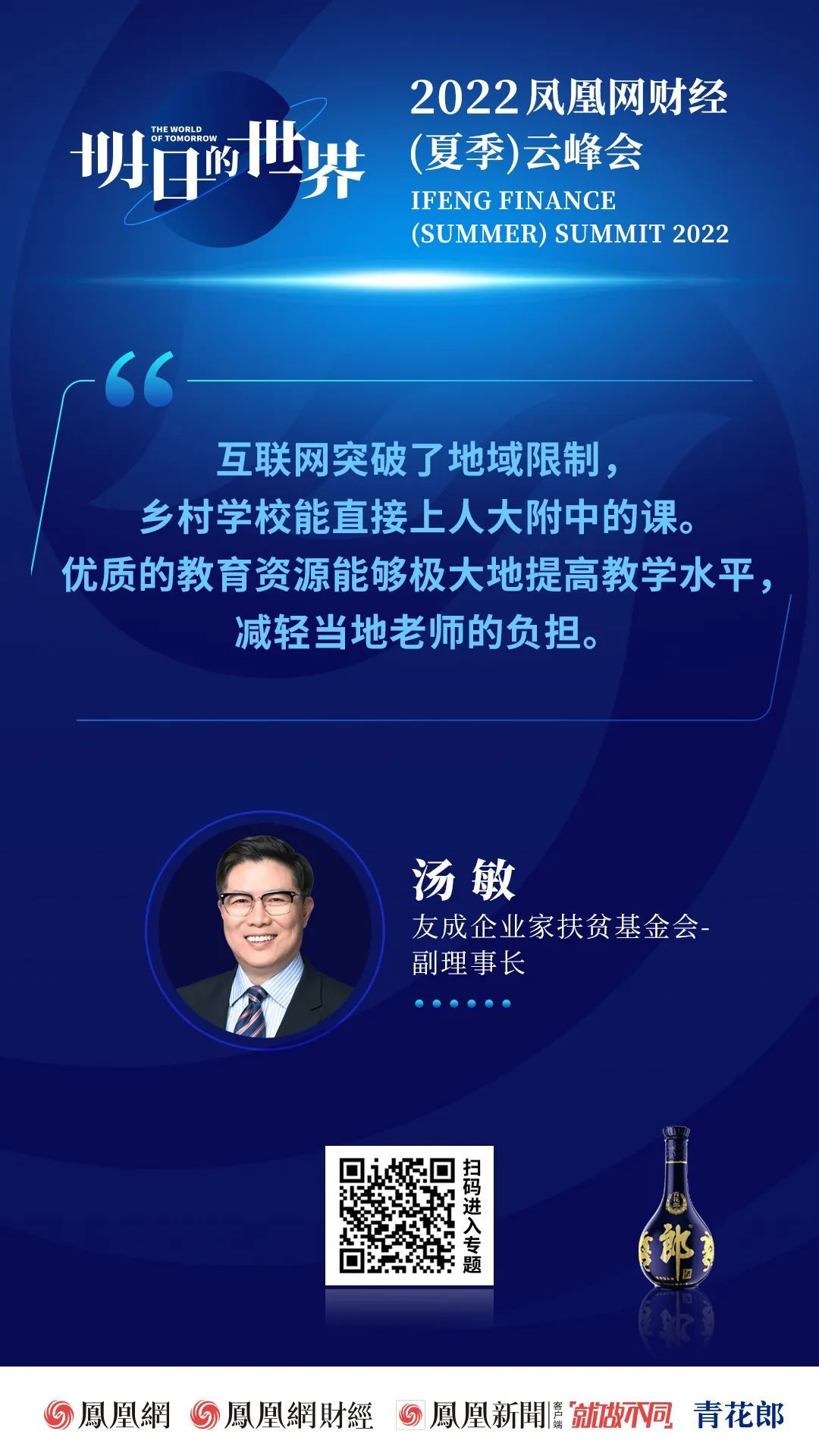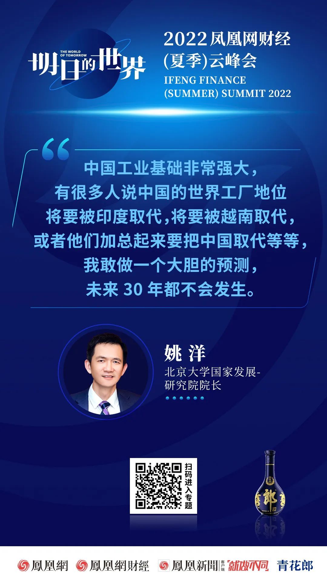 凤凰网财经讯 6月16-18日,由凤凰网主办、凤凰网财经承办、青花郎独家战略合作的“2022凤凰网财经(夏季)云峰会”召开,本届峰会以“明日的世界”为主题,盛邀近60位海内外政商学界顶级嘉宾,解读大变局下的世界与中国经济增长之路。