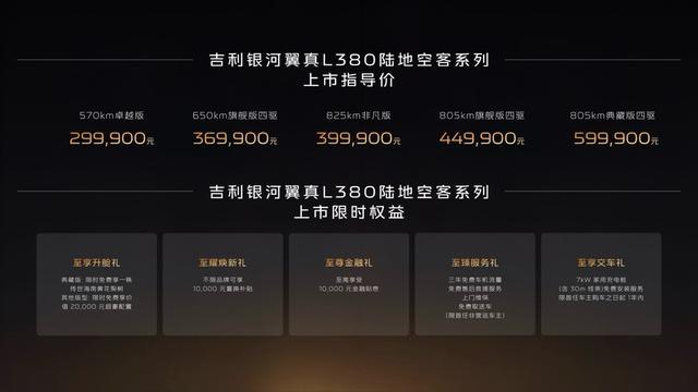 3月10日,吉利银河首款高端MPV——吉利银河翼真L380「陆地空客系列」在「东方好莱坞」横店影视城璀璨上市。新车共推出5个版型,官方指导价29.99万元-59.99万元,成为30万级最大最豪华的纯电MPV,开启“电混同价”新时代。发布会现场,「首席机长」张智霖亲临助阵,并当场下订805km典藏版四驱车型,成为「陆地空客」L380首位明星车主。
