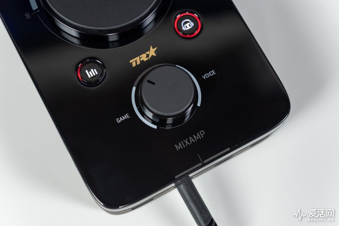 MIXAMP Pro TR本身功能亮点也颇多。除了杜比7.1声道数字环绕声外,它还提供了四套针对不同流派的游戏均衡器方案,机身上的大旋钮不光能用来增减主音量,也可以快速调整游戏音频和游戏内语音音量的平衡,对付话特别多的队友很管用,而且节省了打开游戏选项调整设置的时间和麻烦。