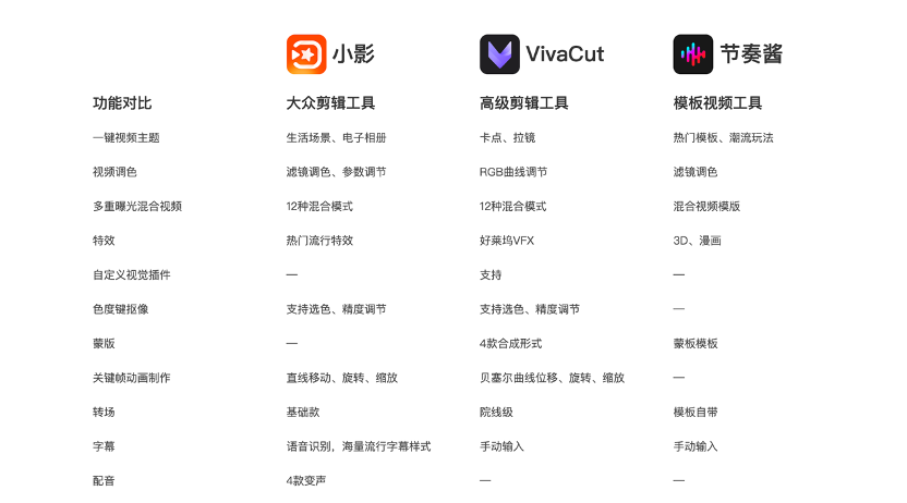 技术有了,韩晟迈出的下一步是推出产品矩阵,吸引各类用户。简而言之,无论你的剪辑能力如何,都能找到称手的产品。