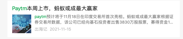 甚至 21 年, Paytm 在印度上市的时候,国内的新闻通稿还都是一片 “ 印度支付宝上市,阿里成最大赢家 ” 的喜气。
