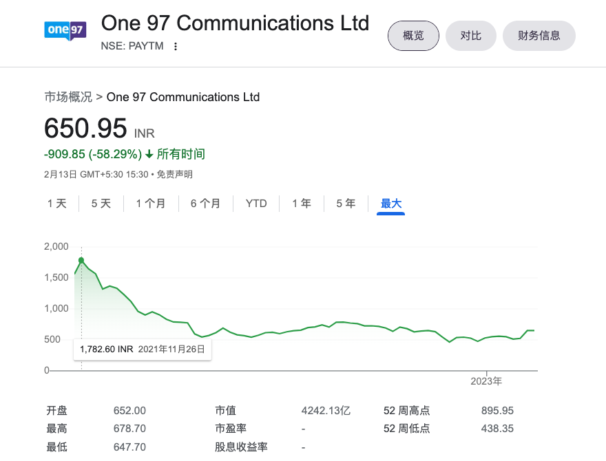 2021 年 11 月 18 日, Paytm 股票上市,结果直接同时收获了印度历史上最大 ipo 和印度有史以来上市日最惨的股票之一。