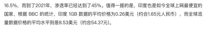 一边大搞数字基建,以至于后来的印度,上网成本极低,一个 G 成本只需要 1 块 6 毛 5 ( 当然了都这么便宜,就先别对网速有什么期待了 ),带着印度人民直接 “ 跑步 ” 互联网时代。