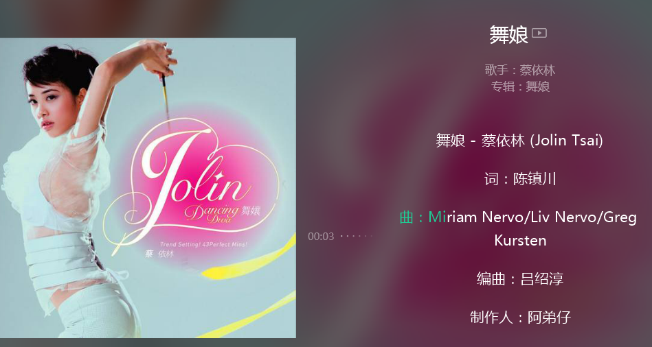 而当时是EMI唱片公司的Gregory Kurstin将《舞娘》的曲子递送给了蔡依林的团队,蔡依林的团队对这首曲子进行填词和演唱,从而全国大火,舞娘充满异国情调的曲风,流畅且利落的节奏和悦耳动人的旋律、再搭配中东色彩的水波彩带舞确实是一个时代的经典。