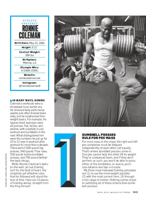 本文选自FLEX杂志2019年4月刊——奥林匹亚先生罗尼·库尔曼的10条训练建议。