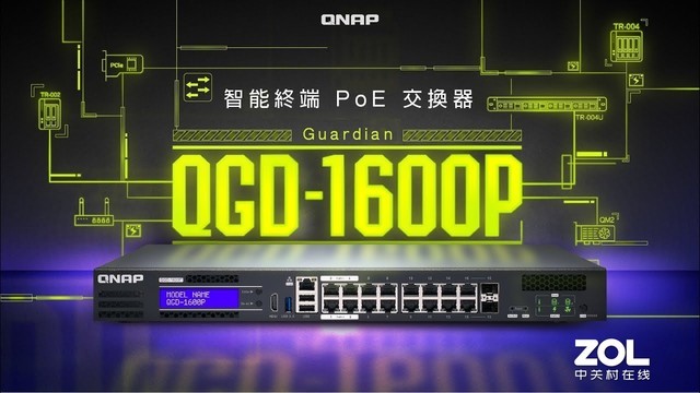 QNAP积极布局网通市场,打造令人耳目一新,整合交换器、以太网络供电(PoE) 与NAS 存储应用于一机的GuardianQGD-1600P网管型交换器。QGD-1600P提供16 个具PoE 管理的网络端口,采用Microchip® VSC7425,支持IEEE 802.3bt 标准可供电高达90 瓦、亦支持VLAN 与QoS 功能。QGD-1600P亦搭载Intel® Celeron® J4105 处理器支持NAS 应用,提供2 个2.5 英寸SATA 硬盘槽、2个PCIe 插槽、HDMI输出,运行QTS 操作系统并提供内建的App Center 可执行虚拟机、软件容器及影像监控等多项应用。