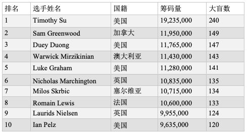 新闻丨2019 WSOP主赛Day5:Greenwood, Esfandiari, Foxen晋级;Timothy Su领跑