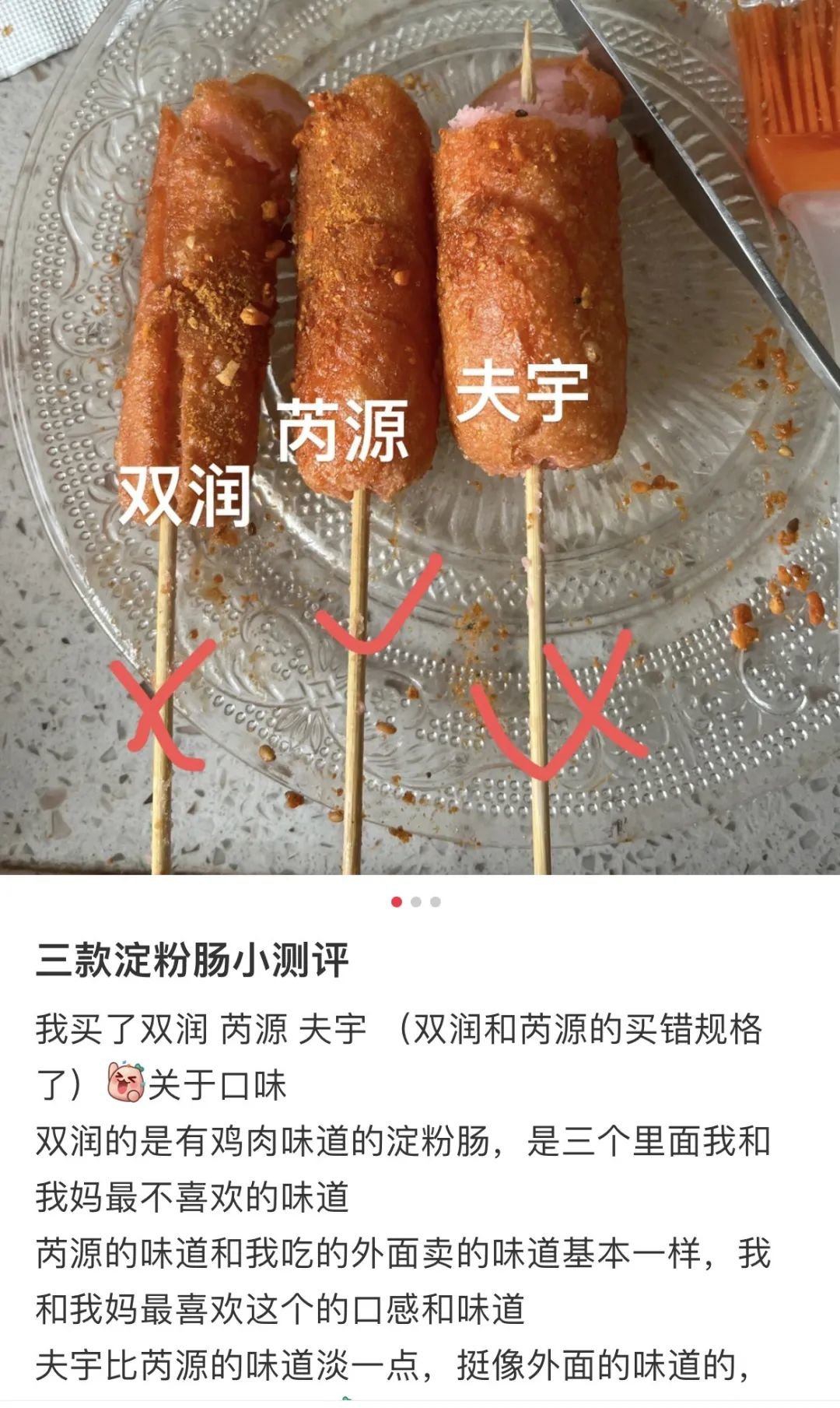 这三种淀粉肠,每个人对其评判的标准都不同,有人说双润吃起来有鸡肉味,有的则说有香精味。