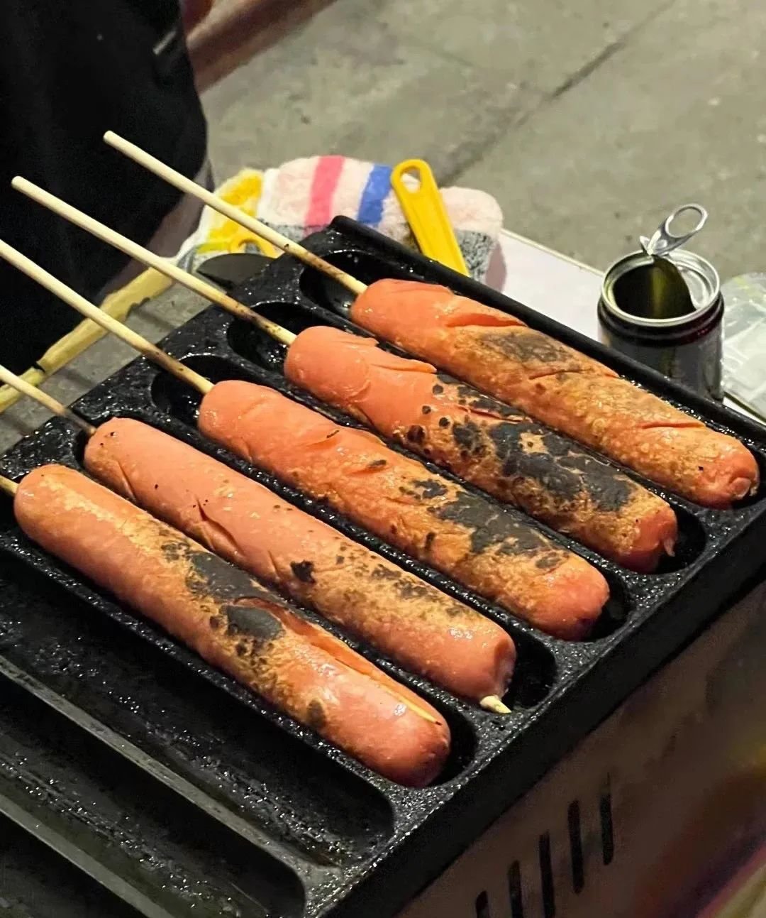 如果烤盘上的淀粉肠有一抹亮眼的黑色,那每个摊位前的顾客都要忧心忡忡。