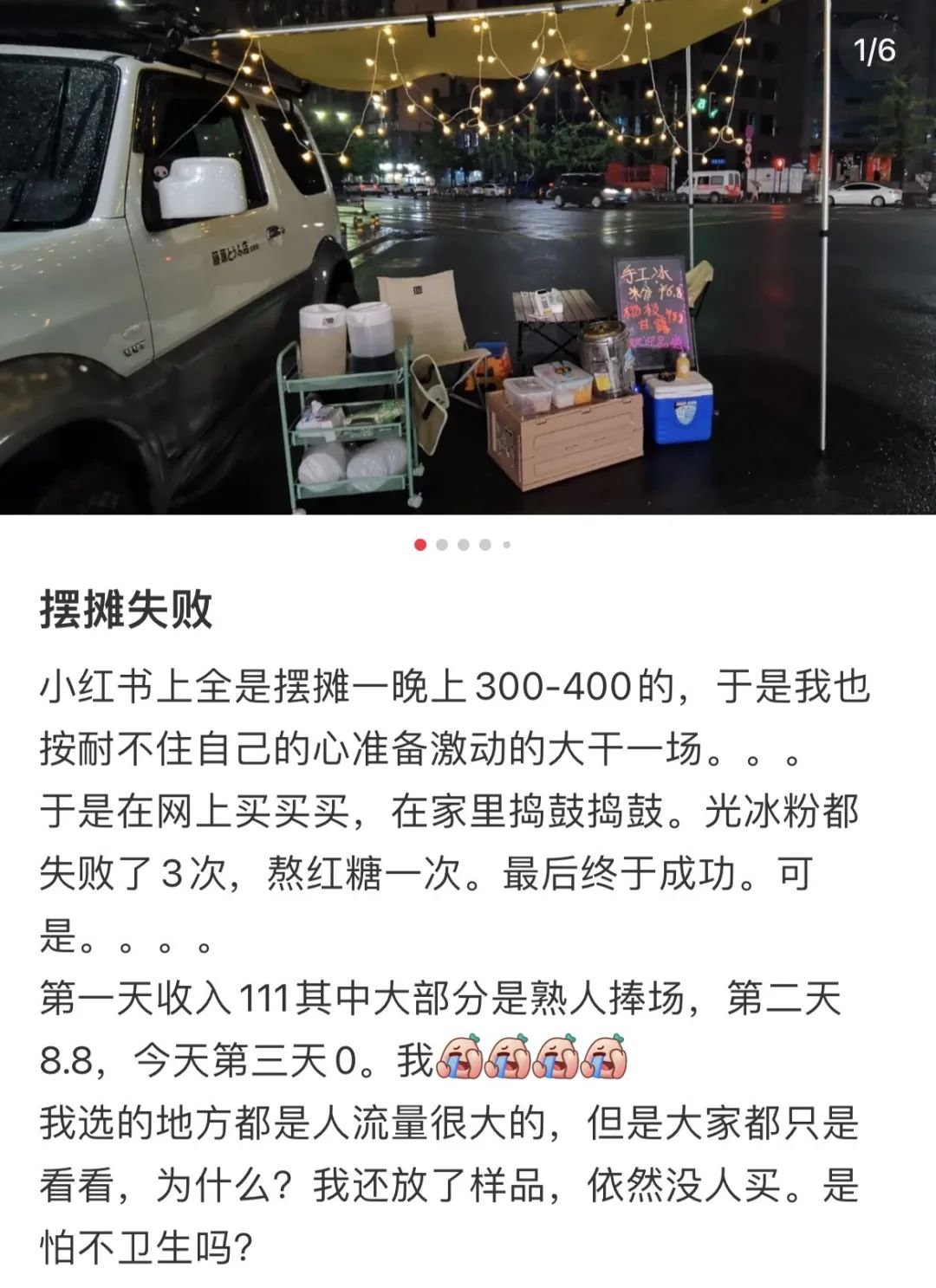 但就像初次创业者大多以赔本收场,毫无经验的人第一次摆摊往往经营惨淡。