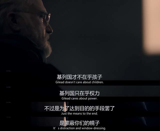 结果约瑟夫主教像看傻子一样看着她,且平静地说出:Gilead doesn’t care about children. Gilead cares about power(基列国不在乎孩子,基列国只在乎权力)。