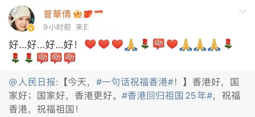 虽然大家形式不一,文字不同,只要是怀着一颗真挚的心,就值得大家为之点赞。特别是在这个特殊的日子里,祝福香港和祖国越来越好!