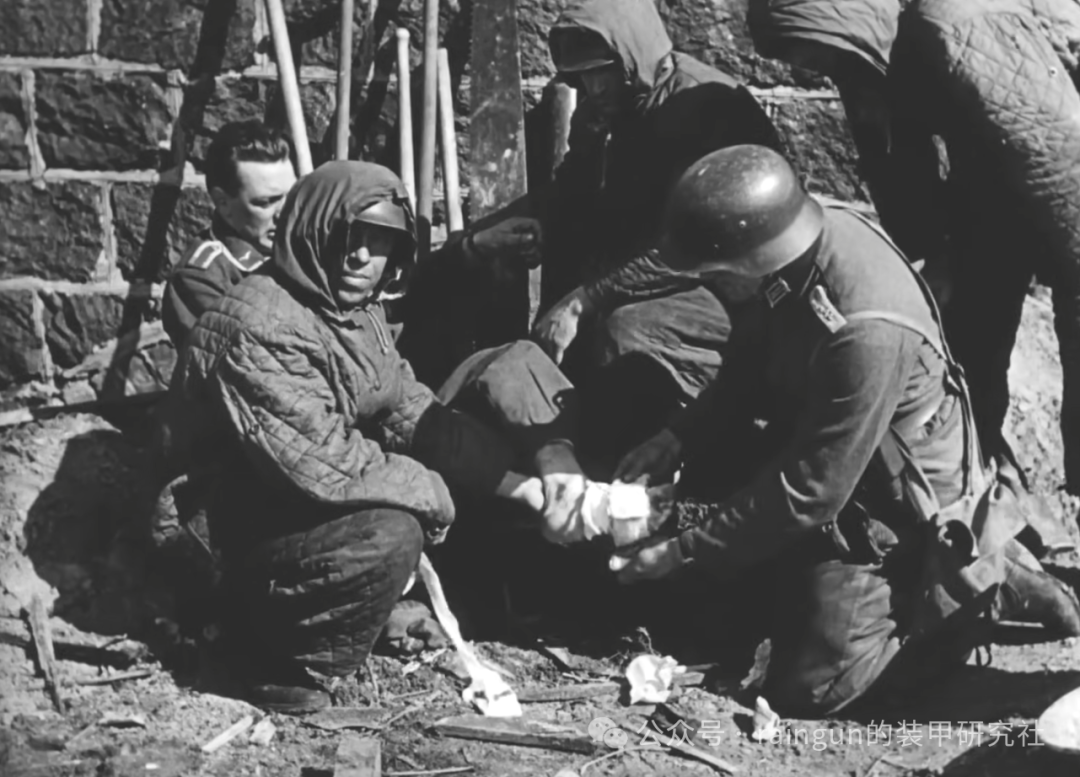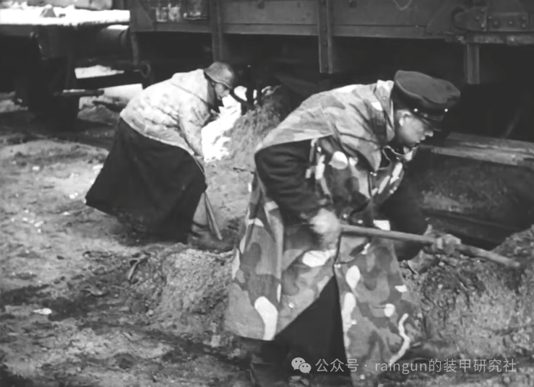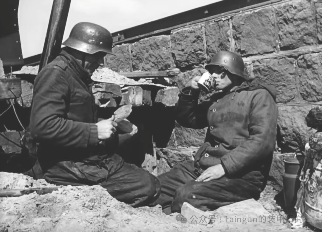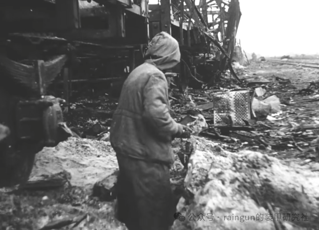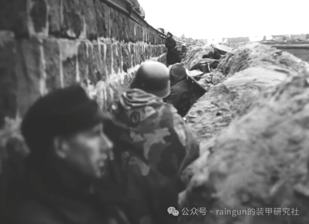 注意这个左1他就是帝国铁路(德意志国营铁路)工作人员,这些铁路工人,吉勒也全部发了枪,充实到了守军之中。此外,根据纳什跟我闲聊的时候说的,第10号装甲列车(Eisenbahn Panzerzug 10)也因为被苏军炮火击伤,也留在了城内,成为守军的半固定火力点。