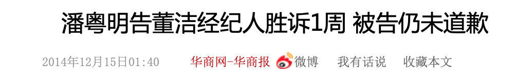 后续的情况就是潘粤明起诉了董洁的经纪人和刊登不实文章的上海申江服务导报社有限公司,状告其侵犯名誉权,最后也胜诉了,但董洁那边迟迟不道歉。