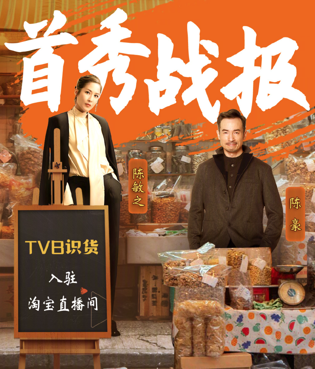 出现在首场直播里的是内地观众最为脸熟、最拥有观众缘的陈敏之和陈豪,虽然说着蹩脚的普通话,但不影响广大网友的港剧滤镜,TVB给出的噱头是“港剧式直播”,比如陈豪卖鲍鱼时就说起在《溏心风暴》里吃鲍鱼的故事。