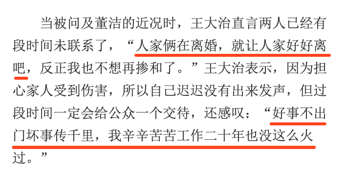 此外,王大治这边也不消停,因为王大治也在婚内,他老婆虽然没有发声,但坊间传闻两人因此离婚,又有人说俩人没离。