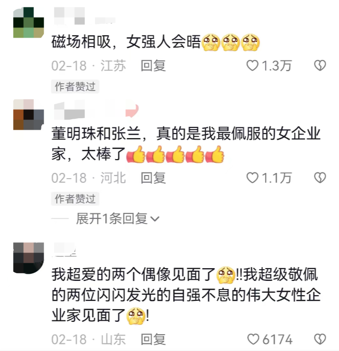 最近她能贡献出的最大话题就是她和董明珠见了面,并营造出“中国最强女企业家会晤”的氛围。