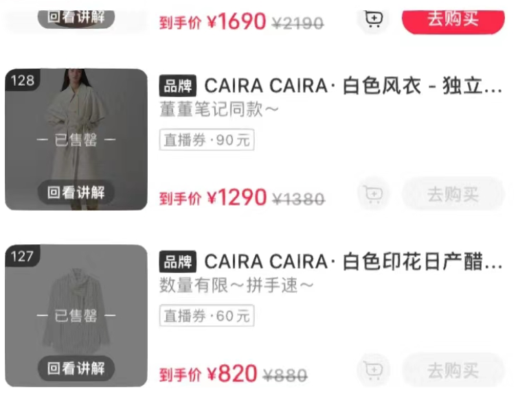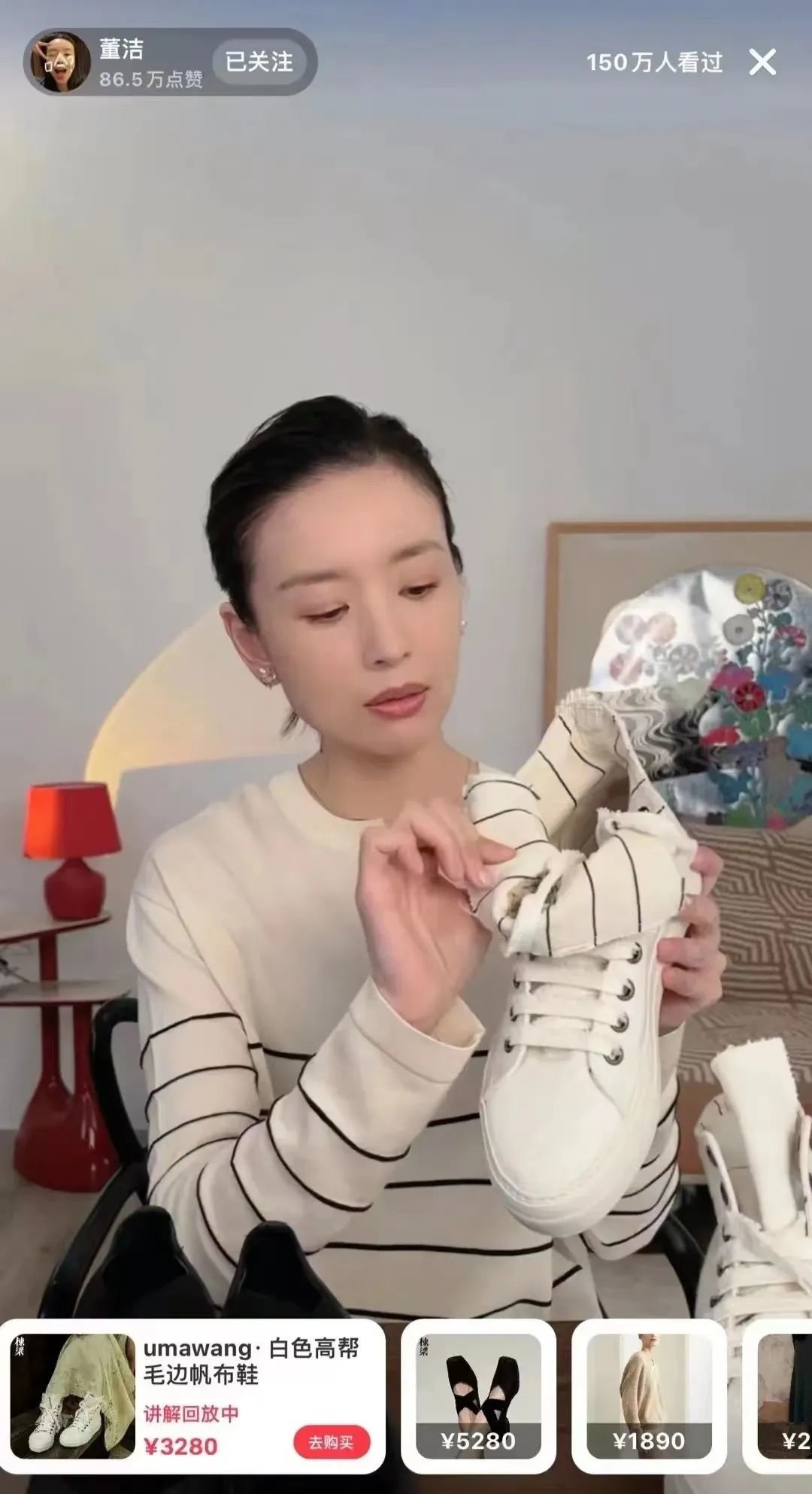而且董洁直播间里的单品都很贵,却出奇地好卖。三千多的帆布鞋,五千多的芭蕾舞鞋,都能瞬间售罄,其他商品大都是单价一两千的小众设计品牌,库存不多,上架就空。