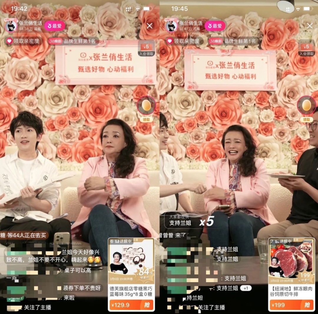 于是张兰转战到了淘宝,当然她也并没有放弃抖音(现在在抖音还是几乎日不落24小时直播)。3月6号白天,她先在抖音直播,到了晚上7点,赶去淘宝直播,被网友戏称为“直播带货996”。