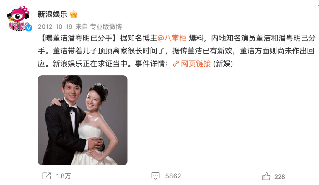 这又是一场类似于董洁和潘粤明的离婚大战,身处漩涡的当事人都有自己的立场,为平息热度,只能暂时消失,等待时间将其慢慢淡化。