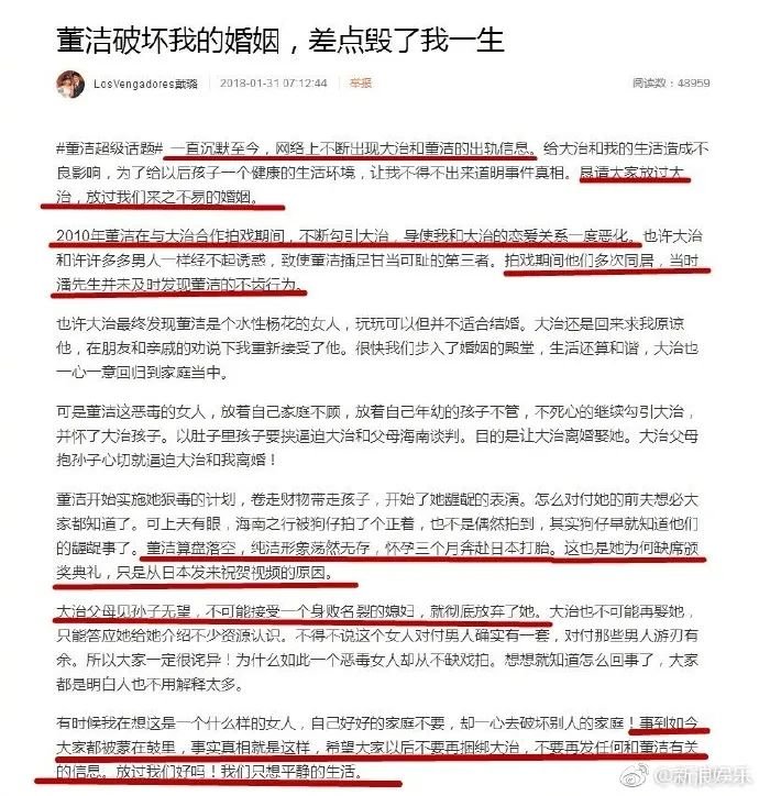 这事直到2018年还有余波呢,王大治的老婆戴璐在2018年突然写长文,说董洁差点毁了她一生。