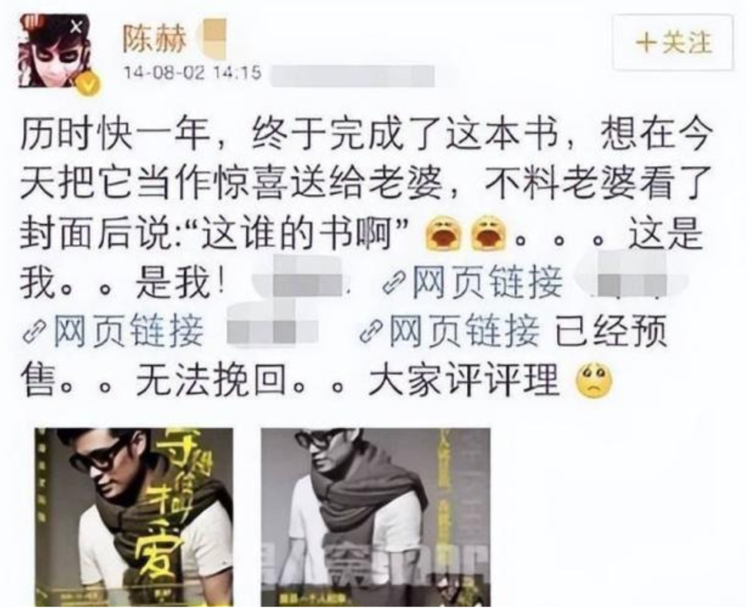 没多久,陈赫还出了一本书叫《守得住才叫爱》,讲述他和许婧的爱情故事,为这段婚姻加上了最后一个讽刺的注脚。