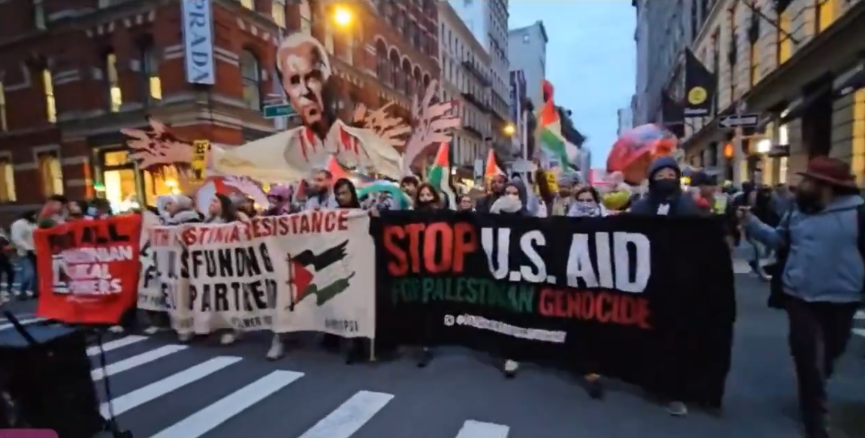 《国会山报》称,反战组织联盟“ANSWER Coalition”于23日在美国商业中心组织举行抗议示威行动。该组织此前就表示:“以色列对加沙的袭击仍在继续,其残忍程度令人难以置信……世界各地的人们必须表明,在此期间,不能照常过圣诞节!”