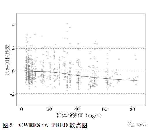 模型结果对给药方案的选择也可呈现在讨论中,如体重、肌酐清除对药物清除的影响,特殊人群给药方案的调整。
