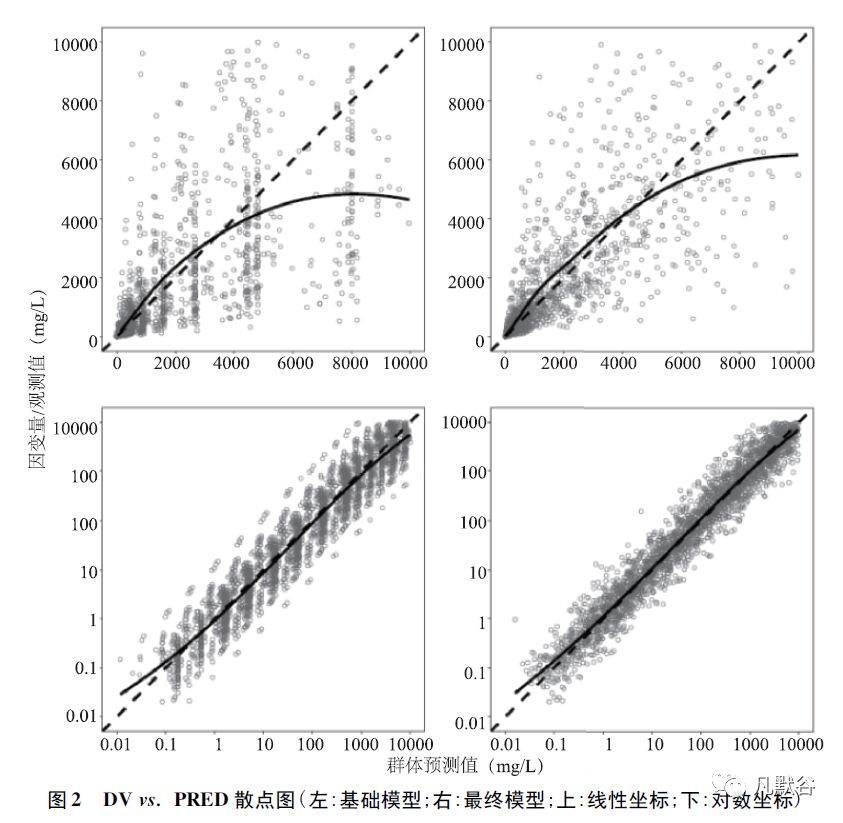 采用非线性混合效应模型的PopPK/PD 模型分析能够定量描述个体的剂量-暴露-效应(doseexposure-response) 关系[12-13]以及协变量对此关系的影响。