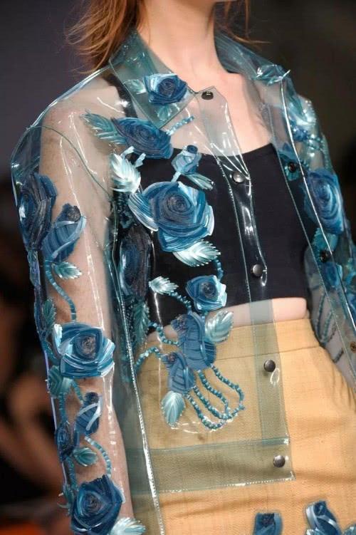 借助PVC等新型人造材料可塑性高、质地特殊、独有的透明感、色彩表现强烈、未来感十足的特点,这几年时装界刮起了一股“透视”风潮。塑料面料成功打入时装界,让追崇时尚前卫的奢侈品品牌找到了另一种演绎时尚的路径。也让人们发现原来固有观念中廉价感的塑料,也可以展现如此巨大的魅力。