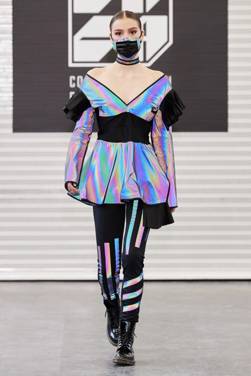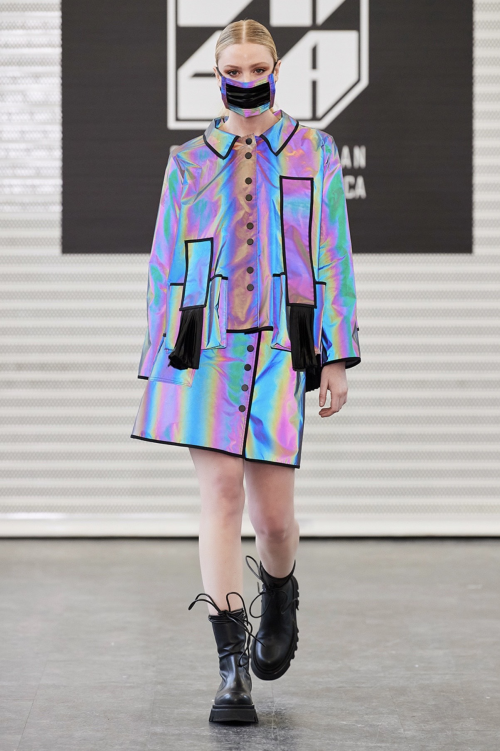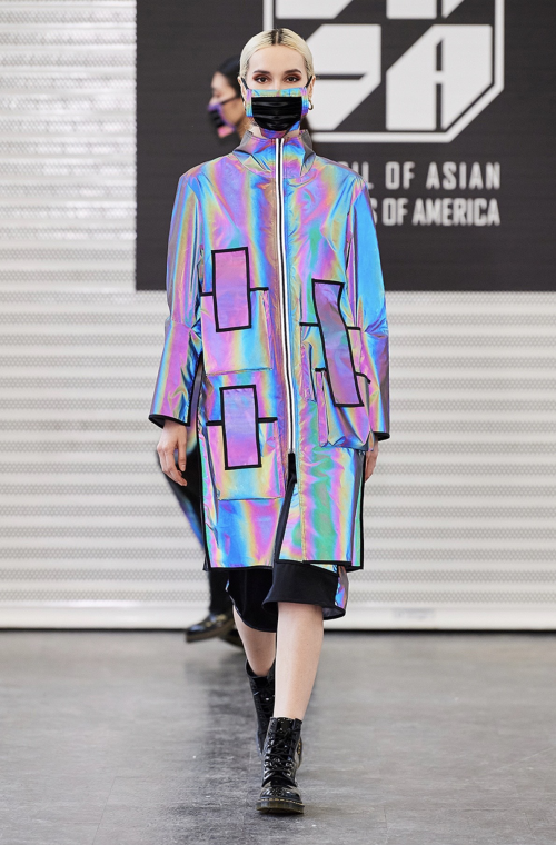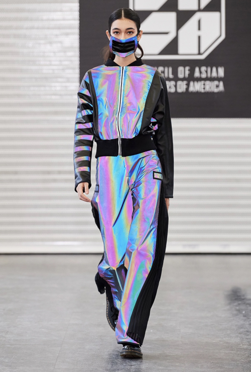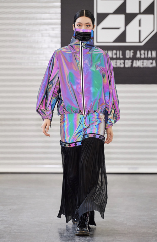 成冰瑶就读于纽约时装学院,时装设计专业。曾是一名空姐的她,放弃了原有的工作,踏入了时装设计的殿门,进驻纽约完成设计梦想。其作品频频得到了业界的认可,并在去年”美国亚裔设计师协会”(CADA)Design Memo艺术展览中荣获纽约最具影响力设计师称号,并在2020年纽约时装周期间登上纽约时代广场路透屏纳斯达克大屏。2019年成立了设计师同名工作室“Bingyao Studio”,以“创新与现代风格”相结合的设计理念和至臻完美的成衣制作服务来进行时尚潮流服饰匠心打造。本季展示系列灵感来源 “Creative Future”,采用镭射影像反光布料为主褶皱布料为辅,柔韧有余的体现了新女性的力量与柔美的概念。在本次秀场展示中以“口罩”设计进行点缀,成为本季纽约时装周的一大亮点之一。 也成为了现场暖心的一幕,虽然语言不同,但是爱是相连的,时尚与温情并存,同时设计师也展现了为祖国抗击疫情加油!