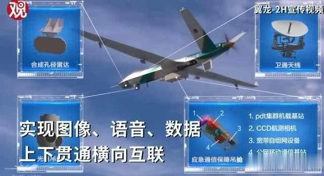 翼龙-2H应急救灾型是在翼龙-2基础上研发的民用型号,系统由无人机、地面控制站以及保障系统组成,最高飞行速度和最大飞行高度均和翼龙2型相差不大,在机载设备方面,搭配有光电探测吊舱、合成孔径雷达、应急投送舱、应急通信保障吊舱等。除了留空时间长、航程大、承载能力出色等传统优点之外,应急救灾型翼龙-2H的环境适应能力也非常出色,可以在“断路断电断网”等极端条件下,完成组网通信、现场探查、物资投送等高难度任务。