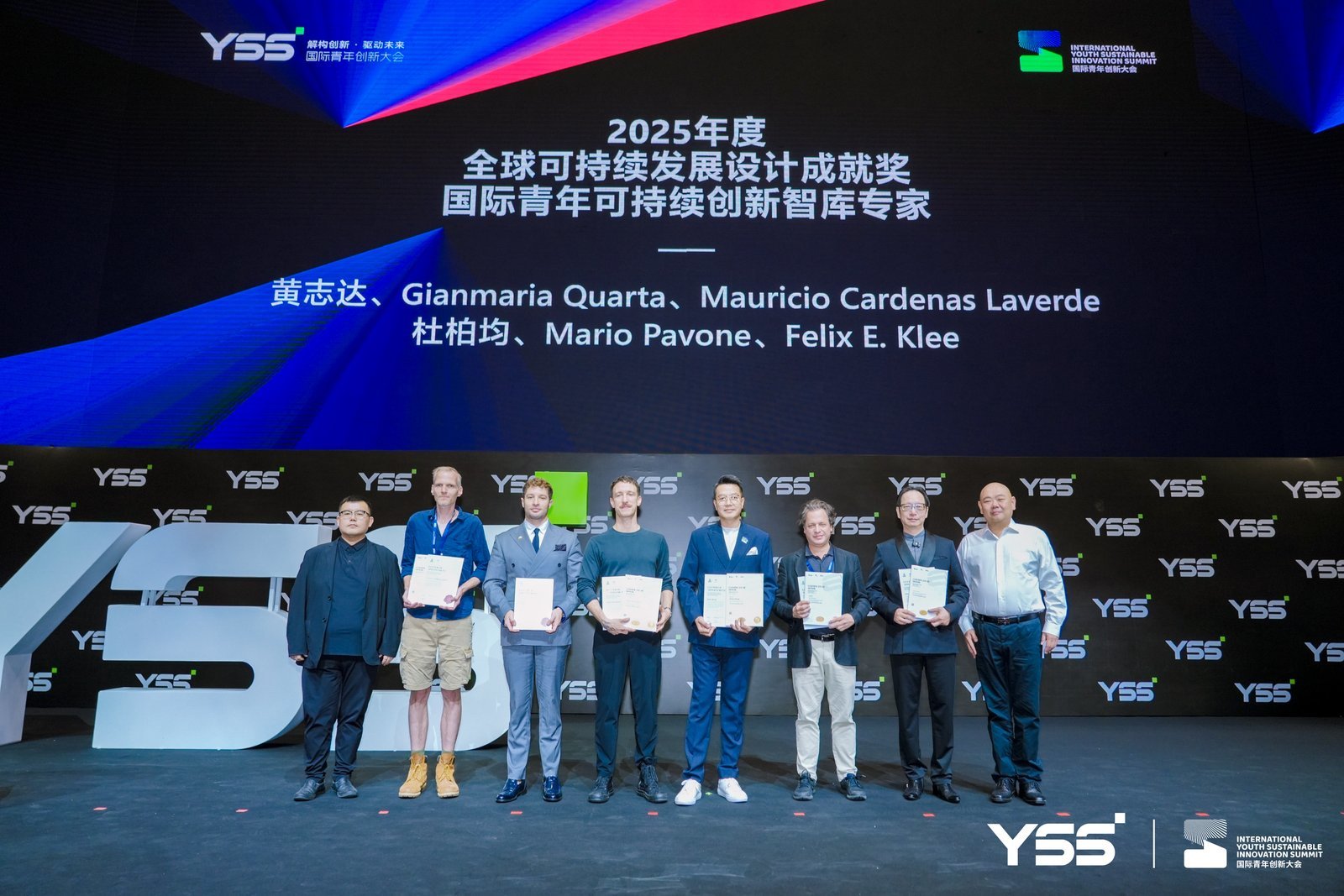 黄志达、Gianmaria Quarta、马儒骁、杜柏均、马里奥、菲利克斯共计六位知名设计师获此殊荣。生态环境部宣传教育中心社会宣传室主任杨俊,YSS国际青年创新大会创始人/执行主席、国际青年创新智库发起人、世界未来科技发展联合会秘书长、中国国土经济学会碳中和专业委员会秘书长马飞共同为六位获奖者隆重授牌。