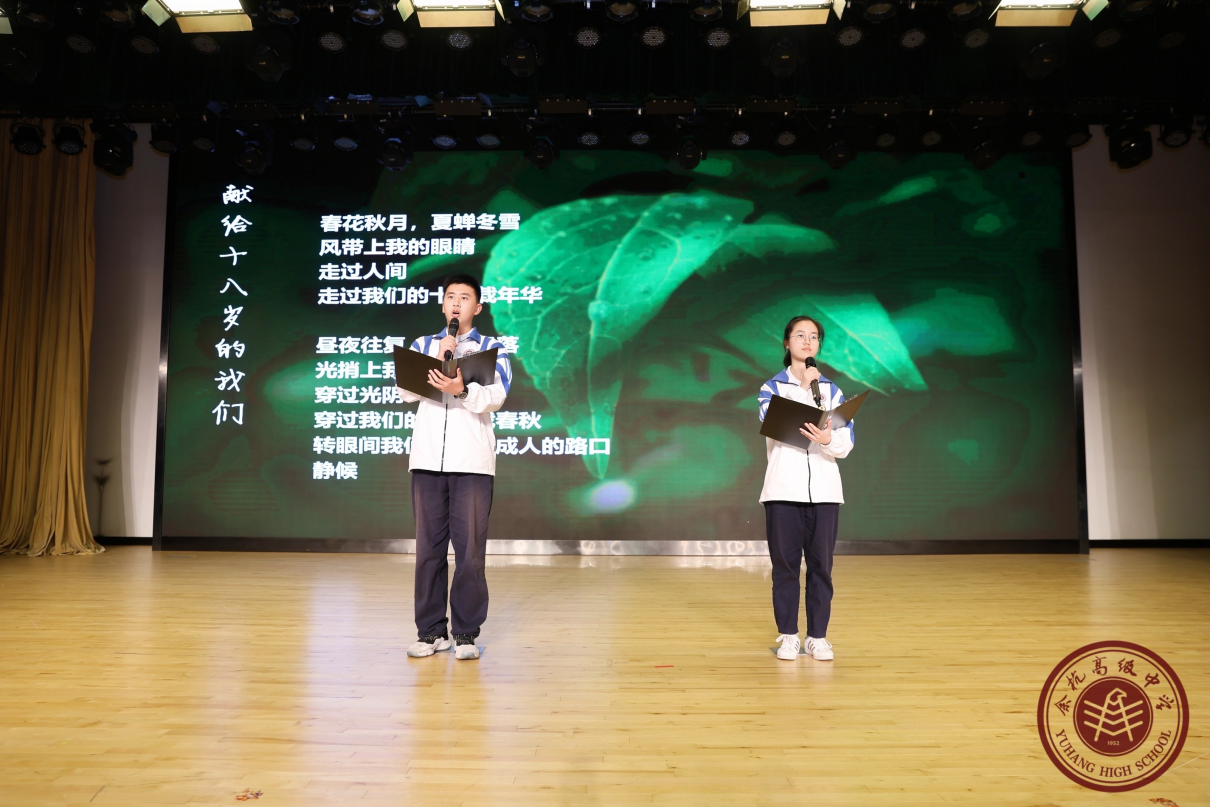 除了师长、家长的祝福与期许外,毕业的学长学姐们从各自的学校发来祝福。感受来自各处的余高力量,感受奔赴战场前的余高精神,这些无不在激励着“余高人”奋力向前!高三(2)班的柯任泉同学和高三(16)班的潘欣宇同学带来朗诵《献给十八岁的我们》,表达自己对青春的理解与感悟。