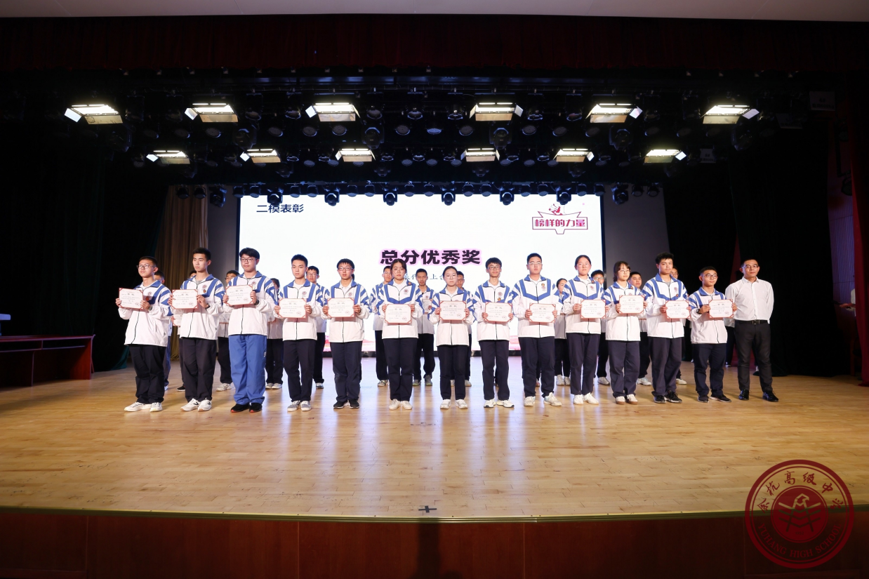仪式在庄严的国歌声中拉开序幕。知己知彼,百战不殆,高三同学们刚经历二模测试,高三年级部副主任张兆光进行二模情况介绍并宣读表彰名单。学校党委书记、校长俞建中,副校长冯凌凌、张明华、蒋春华等校领导为二模单科优秀学生、总分进步学生学生及总分优秀学生进行表彰。同学们从表彰中明确目标、汲取动力,不断奋进。
