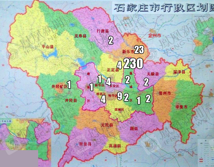 石家庄市区-藁城区-正定县-新乐市疫情确诊图,11日
